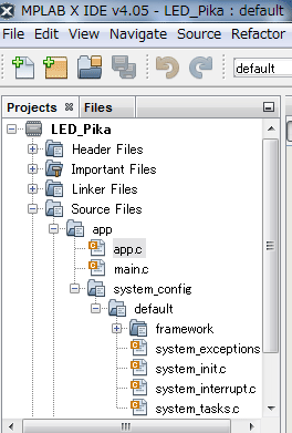 • たくさんファイルが出来ますが、このうち、app.c と system_interrupt.c を編集します。