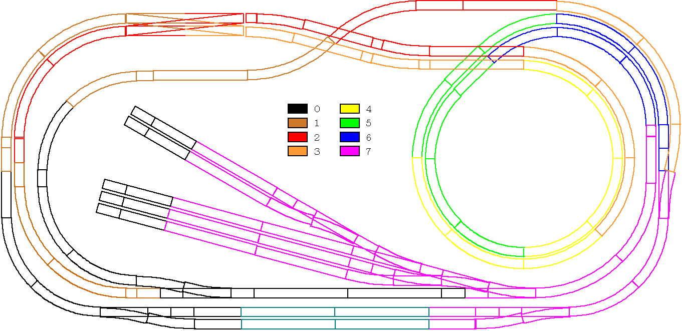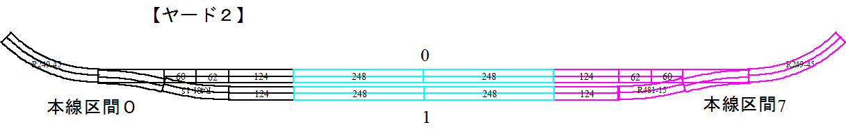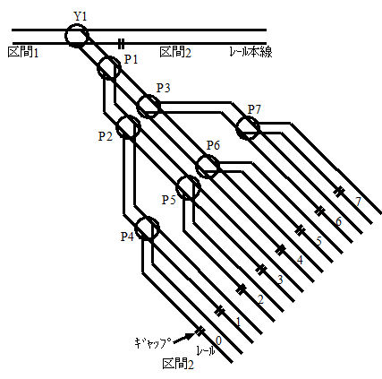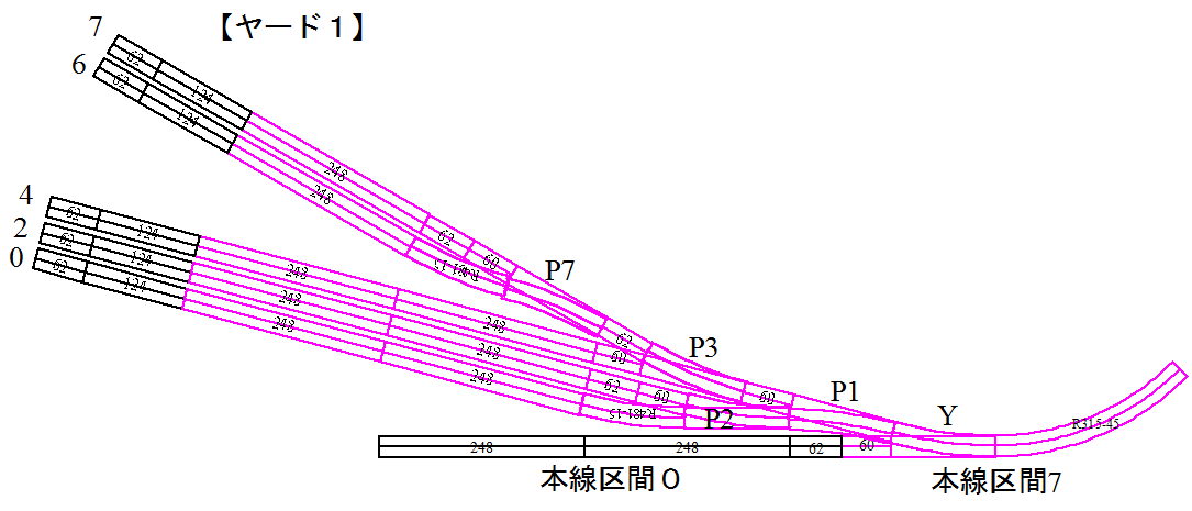 ・車両基地はループ区間を切り替えて作ります。列車がギャップを跨いだのを検知して車止め手前で停止させます。