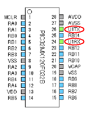 メインのマイコンにPIC32MX120F032Bを使用してドライブボードと232Cで通信します。
