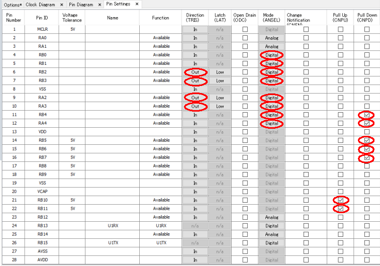 ANSELB = 0; // アナログ入力 AN0からAN7 を無効