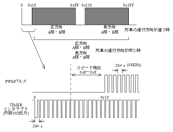 これまではモーターのスピード調整に100Hz程度でPWM制御していましたが、少し音も気になるので周波数を40KHz程になるよう方式を変えます。ハードの変更はしないでソフト変更のみで行います。