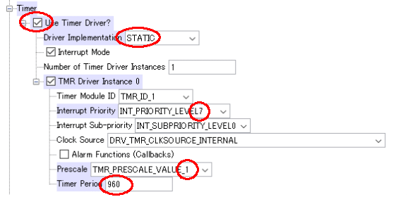 【TIMER】(PRESCALE:1 TimerPeriod:960に変更)