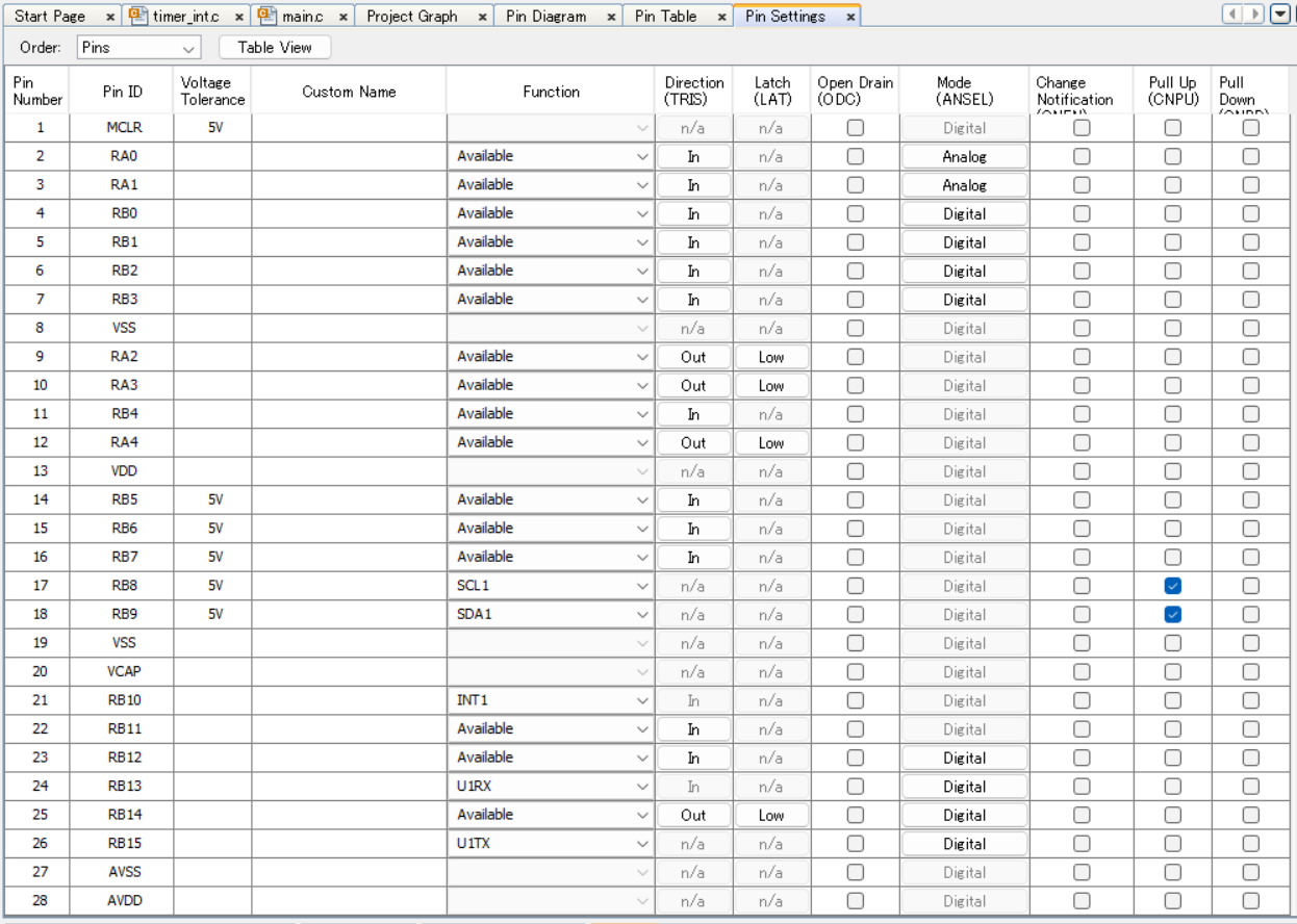 PinDiagramのTABを選択すると割り当てを変更したPINが緑色になっています。
