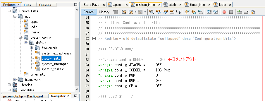 ・PicKit4で動かないときはConfiguration BitsのDEBUGの部分をコメントアウト
